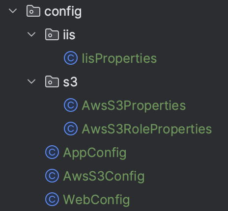 프로퍼티 디렉토리는 S3관련, IIS 관련 요런식으루 구성을 했고 정보들은 yml 파일에 따로 분리해 놓았습니다.